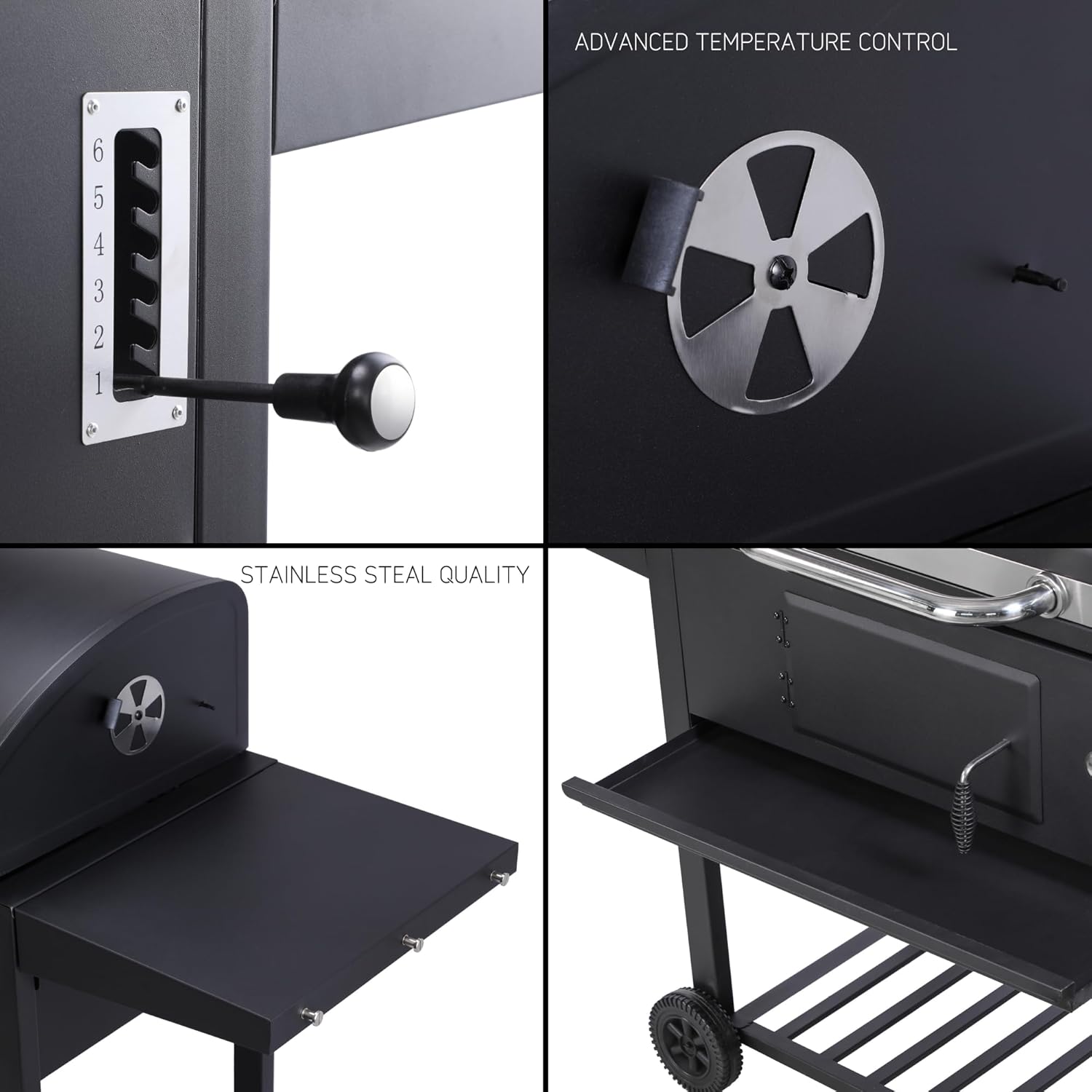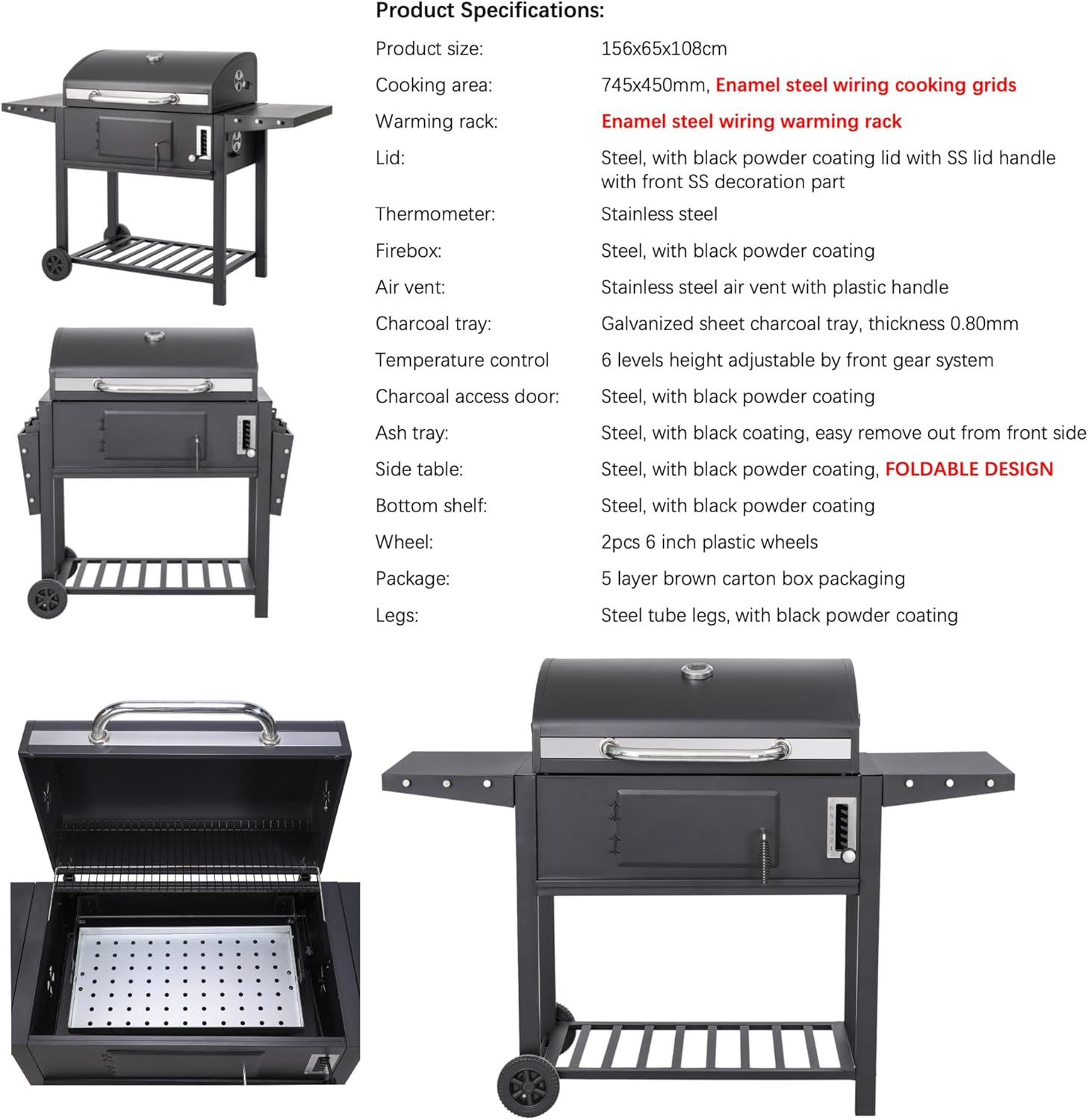 • Adjustable Charcoal Tray (6 Levels) – Precise heat control for all cooking styles