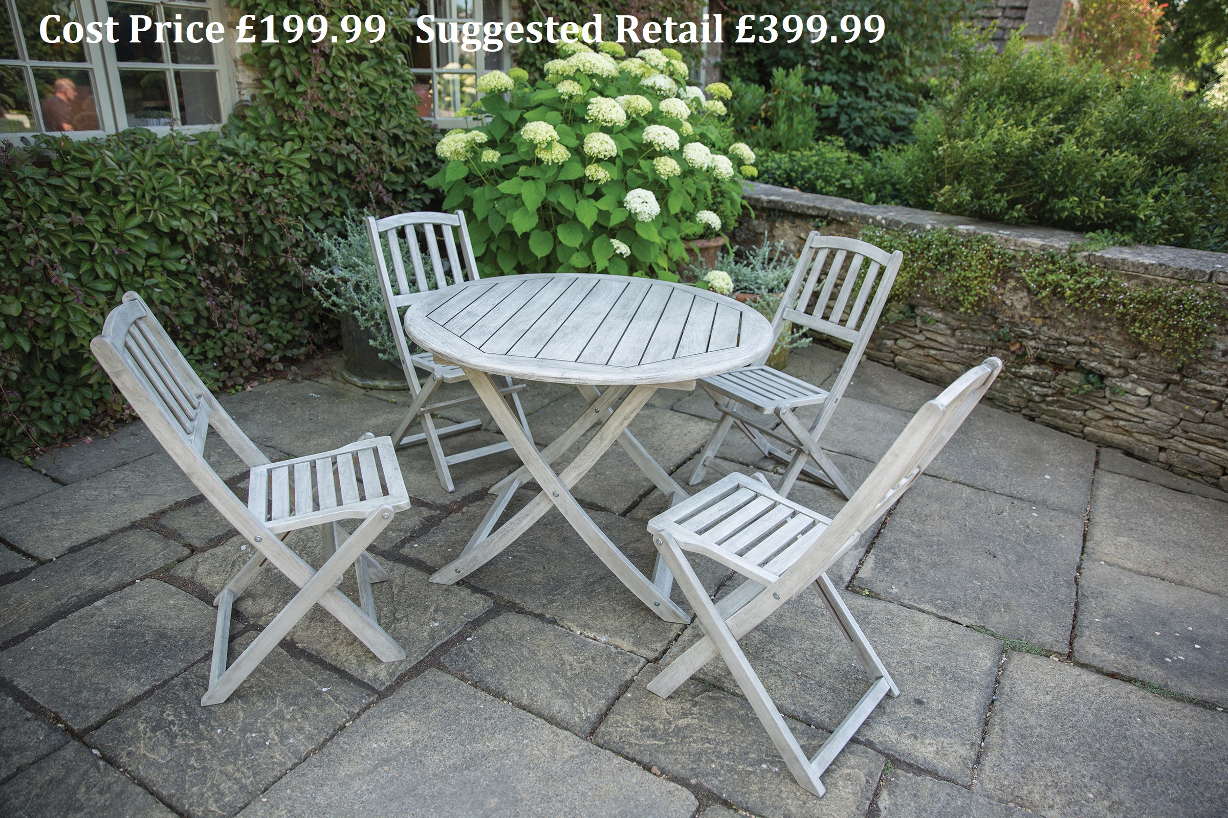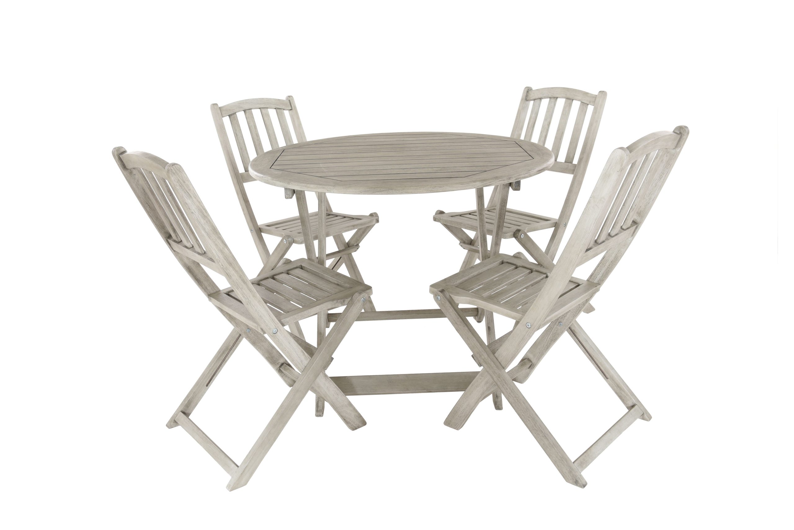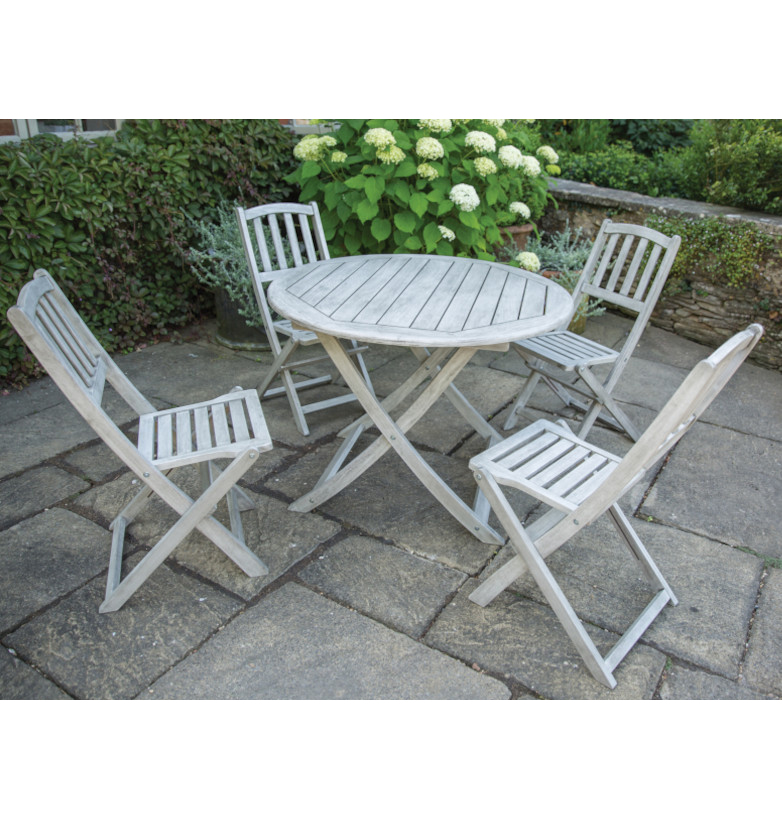 The Dorset dining set includes a spacious dining table and four comfortable folding chairs, providing the perfect setting for outdoor meals with family and friends. The foldable chairs allow for easy storage and convenience, especially when space is limited.