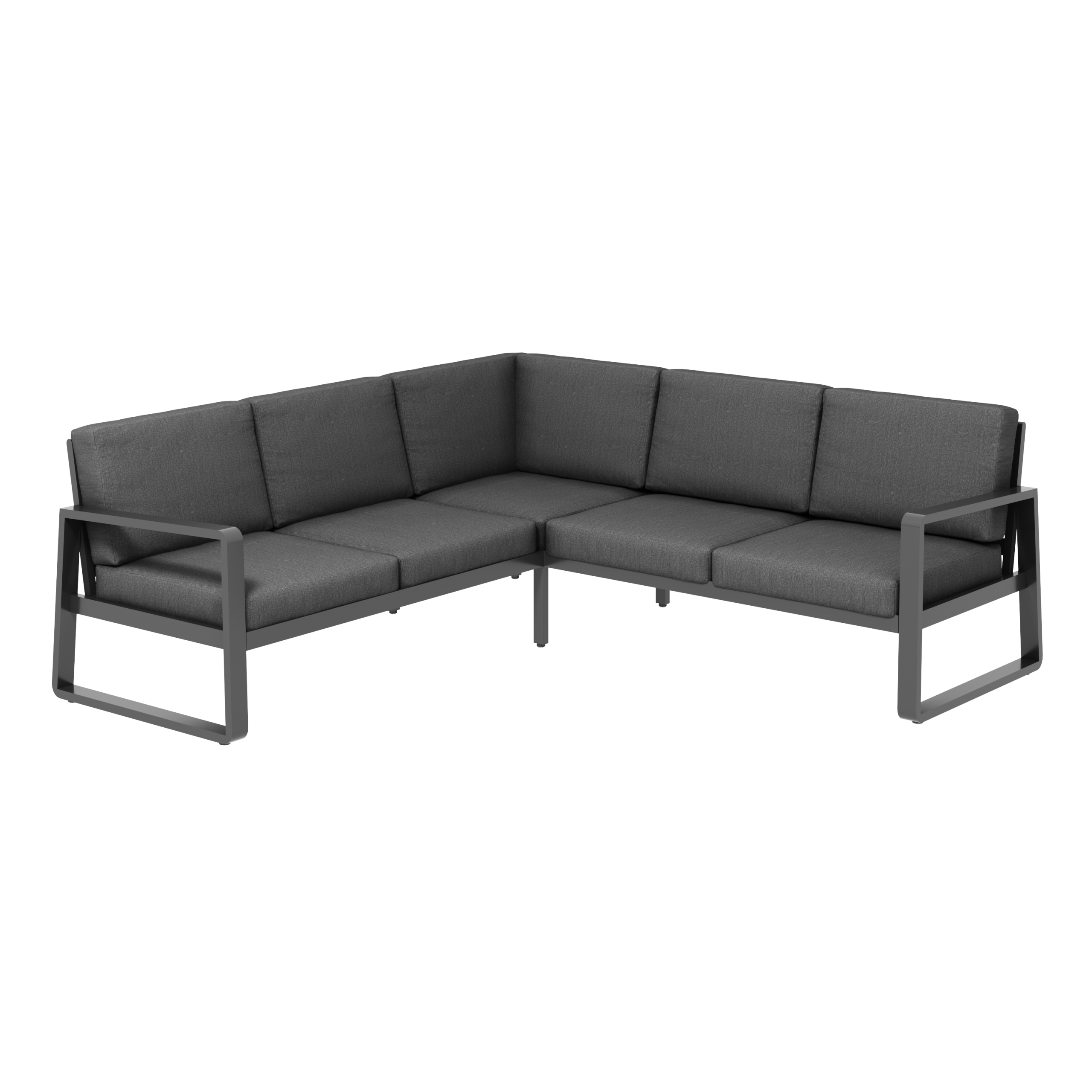 The spacious corner sofa with matching sofa chair offers plenty of seating for family and guests, making it ideal for patios, terraces, and garden spaces. Finished in a sleek charcoal grey, this set brings a contemporary, designer look to any outdoor setting.